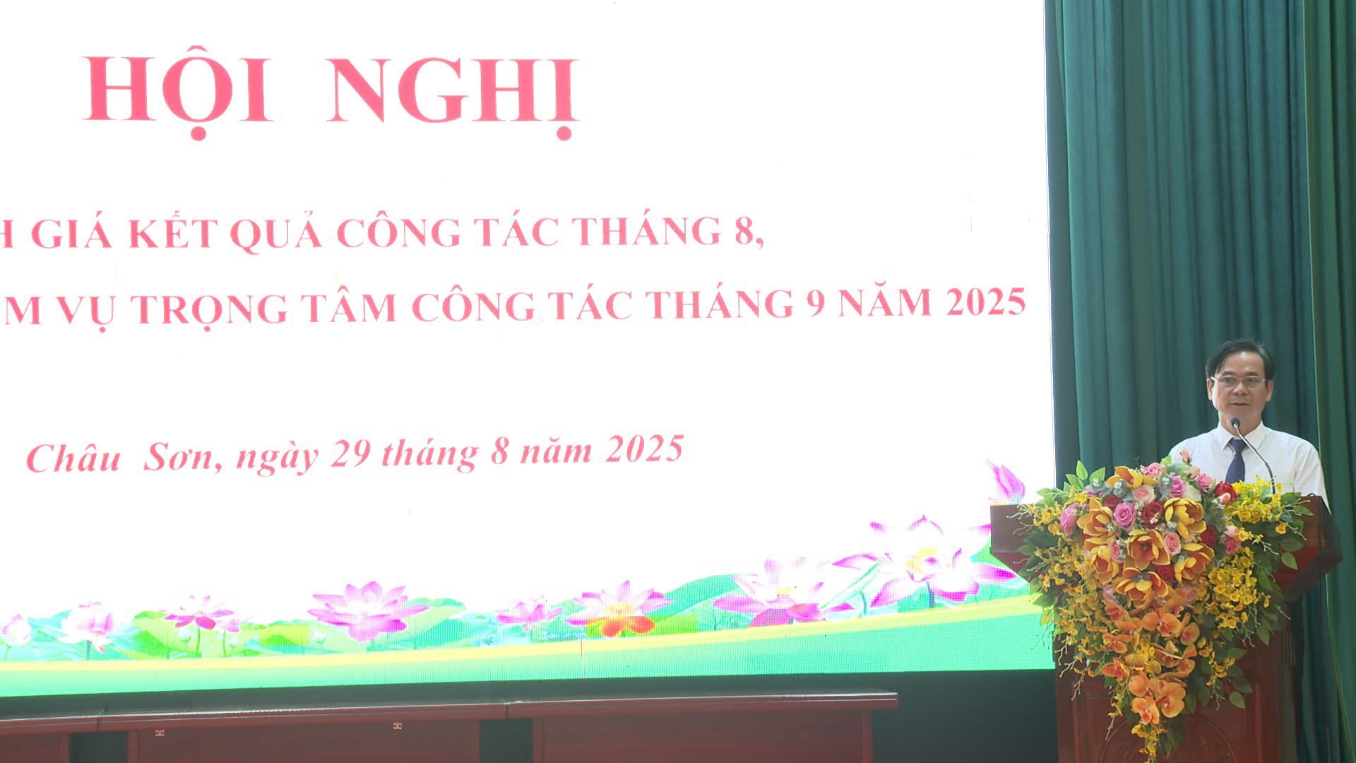 Đảng ủy phường Châu Sơn tổ chức Hội nghị đánh giá kết quả công tác tháng 8, triển khai nhiệm vụ trọng tâm công tác tháng 9 năm 2025